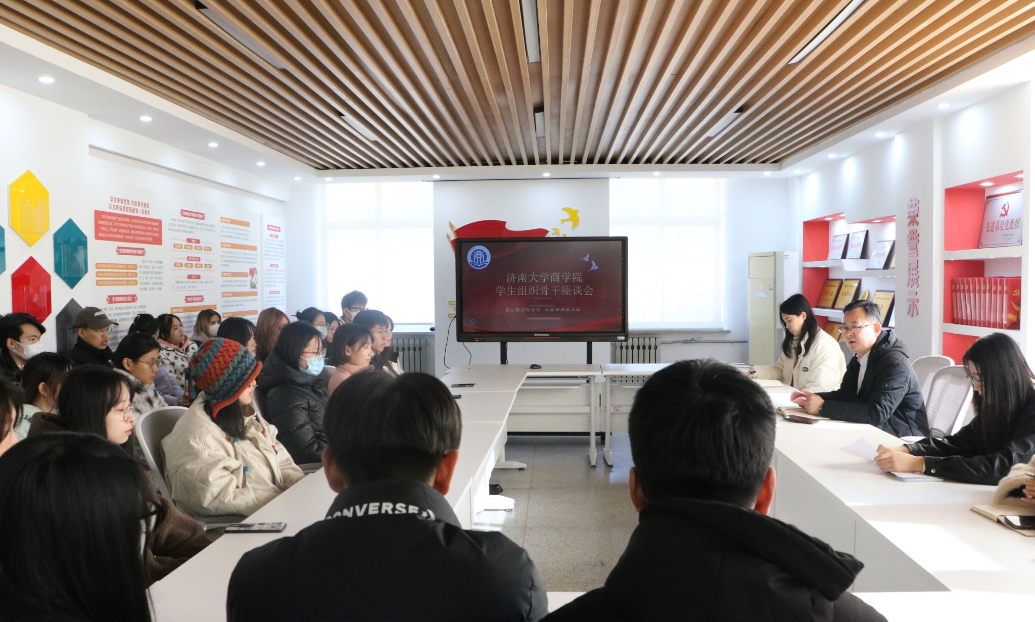 为深入了解学生组织工作,加强学生组织骨干队伍建设,增强学生自我教育、自我管理、自我服务的意识和能力,进一步提升学生组织的同学满意度、大局贡献度和社会认可度,11月29日,商学院召开学生组织骨干工作交流座谈会,商学院党委副书记、副院长袁海占出席会议并讲话,学院辅导员、各学生组织主席团成员参加会议。
