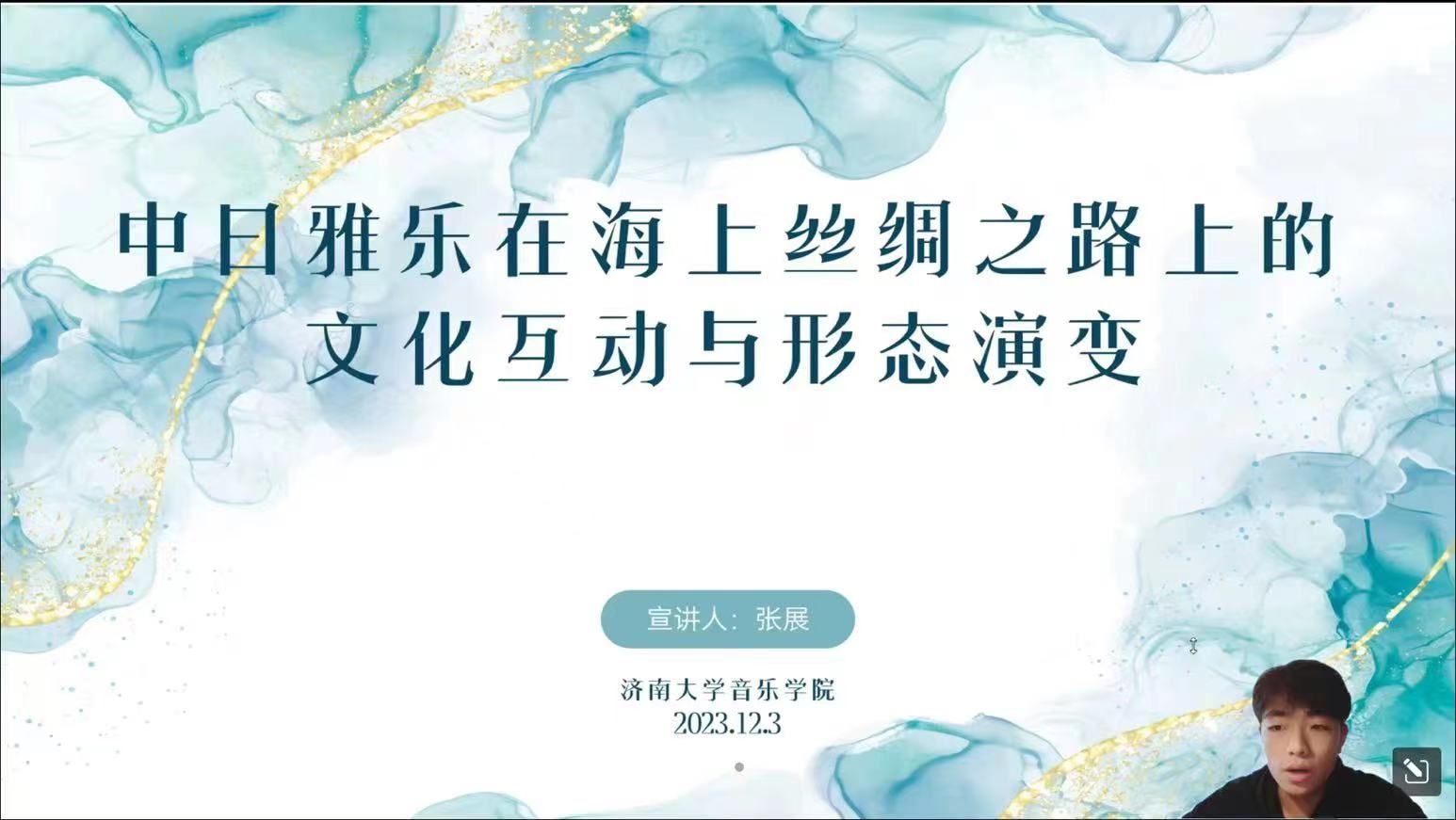 其次,在分会场我院四位硕士研究生进行线下发言。2023级音乐教育方向研究生蔡依檀对其论文《音乐在“南洋”海上丝绸之路经济交流中的角色与影响》进行讲解,论述音乐在海上丝绸之路经济交流中扮演了促进贸易、加强文化交流和增进相互理解的角色。2022级音乐教育方向研究生王子仪以钢琴改编曲《走马随想曲》的演奏技巧与音乐诠释为切入点,分析与归纳传统音乐古谱与钢琴音乐的共通点,探索更多民族元素运用于我国海上丝绸之路钢琴音乐创作的有效路径。2023级音乐教育方向研究生李泽华以扬琴与钢琴的音乐碰撞及融合为主要创新点,探讨扬琴元素在钢琴改编音乐中的运用,如何用不同的创作技法呈现多元民族乐器的音色与技巧,探索中西音乐融合的有效路径,彰显民族音乐文化在钢琴演奏中的实践价值。最后,2023级音乐教育方向研究生郭春丽以《海上丝绸之路音乐文化交流与福建南音三弦的共生与发展》为论文题目,从福建南音与其它国家的历史渊源,以及福建南音三弦在日本的传承发展进行阐述。