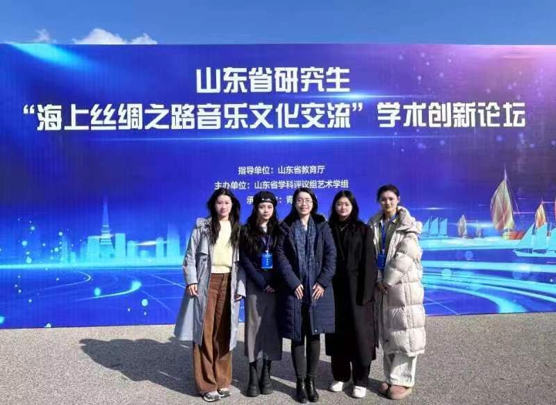 近日,由山东省教育厅指导、山东省学科评议组艺术学组主办、青岛大学音乐学院与研究生院承办的“海上丝绸之路音乐文化交流”研究生学术创新论坛顺利举行,来自中央民族大学、沈阳音乐学院、华东师范大学、西藏大学、beat365中文登录入口、青岛大学、广西艺术学院、山东师范大学、内蒙古科技大学、包头师范学院、大连艺术学院、齐鲁工业大学等十一所院校研究生参加此次论坛。beat365音乐学院27名硕士研究生的论文主题成功入选,在海上丝绸之路论坛进行发言,论坛采取线上、线下相结合的形式,我院钢琴教研室主任林沛蕾教授带领四位研究生赴青岛大学参加此次论坛的线下会议部分。