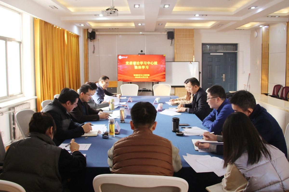 12月27日,管理科学与工程学院党委理论学习中心组召开集体学习会,学校党委宣传部副部长刘怀柱等列席指导,学院党委领导班子成员,理论学习中心组成员参加学习。学院党委书记王勇主持集体学习会。
