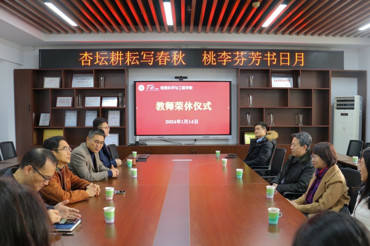 “一支粉笔,行云流水;四季耕耘,硕果累累”。1月14日上午,信息科学与工程学院在12教704会议室为董吉文、杨雪梅两位教师举办荣休仪式,学院班子成员、相关系部负责人、退休教师以及教师代表参加仪式,仪式由学院党委书记夏卫东主持。