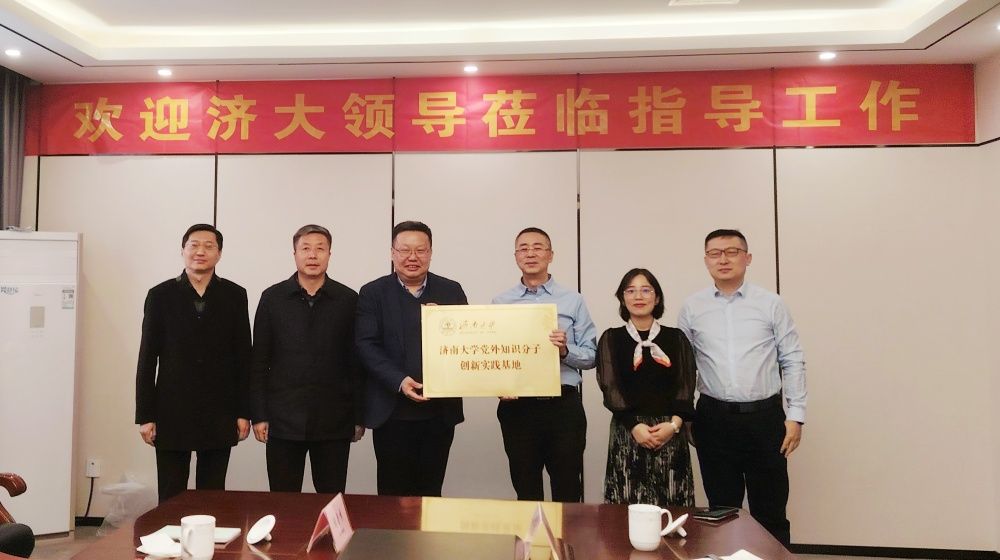 3月21日下午,beat365中文登录入口党外知识分子创新实践基地授牌仪式在山东大盾科创集团举行。学校党委常委、统战部部长徐庆国带队参加调研活动和授牌仪式,商学院党委书记彭亚宁、机械学院党委书记程涛、机械学院副院长张辉、商学院副教授张鲁秀、统战部有关人员参加活动。
