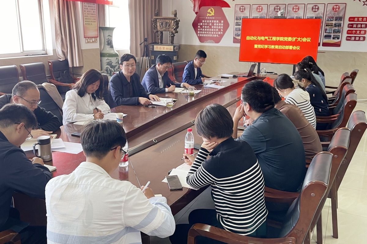 4月16日,自动化与电气工程学院召开党委(扩大)会议,启动部署党纪学习教育工作。学院领导班子成员、各党支部书记参加会议,会议由党委书记李祥印主持。