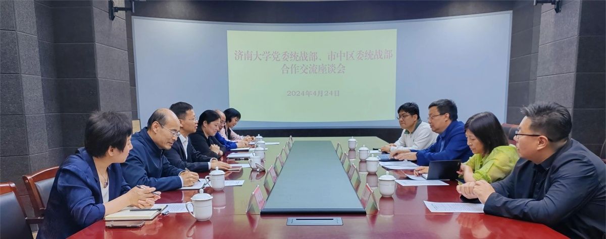 4月24日下午,学校党委统战部与市中区委统战部召开合作交流座谈会。市中区委常委、宣传部部长、统战部部长、教育工委书记范立振,学校党委常委、统战部部长徐庆国参加会议。