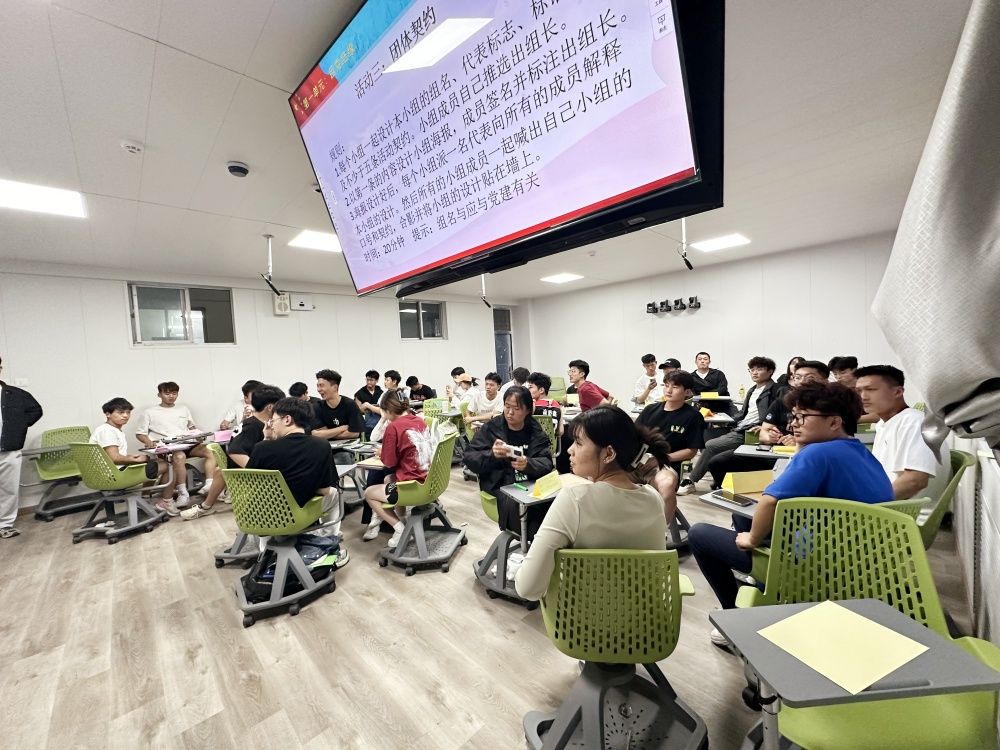 本次体验式党课分为集体意识、榜样引领、爱党爱国、强国有我四个单元。集体意识单元,通过“因党结缘”“我们的约定”“红星在我心”三个活动,进行分组合作,设计本小组的组名、代表标志、标语、契约等,增强团队凝聚力。榜样引领单元通过“榜样的力量”“我心中的英雄”等活动,进行中国共产党人的精神谱系和英雄故事学习分享,重温党的光辉历程,缅怀革命先烈。爱党爱国单元通过“知识抢答”活动,使参与学生了解关于党的基本知识,提高对于党的认识。强国有我单元通过“手绘中国”活动,学生根据对中国未来社会发展的预期和畅想,以小组为单位自由创作一幅题为《25年后的中国》画作。