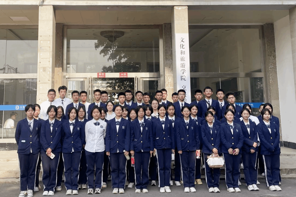 仪式上,孟德洋首先对深泉外国语学校师生的到来表示热烈欢迎,并介绍了学院的办学情况、教学理念与未来发展。他表示,学院积极响应国家文化产业、旅游产业、健康中国的发展战略,建立了完备的旅游管理大类学科体系,形成了以文化经营管理、旅游管理为主体,以食品科学为特色的学科分布群,同时学院与国内多所院校、企业共建有联合培养平台、实习实训基地。学院高度重视招生工作,全院上下苦练“内功”、持续加强专业内涵建设,结合学校高水平应用研究型大学定位,探索实行“学历教育+技能教育”的人才培养模式,为社会培养知识与综合素质双修、家国情怀与国际视野兼具的新时代学子,获得了广泛的认可。