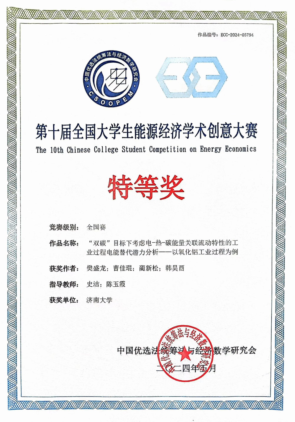 全国大学生能源经济学术创意大赛(China National College Students Competition on Energy Economics)是由中国优选法统筹法与经济数学研究会主办、低碳发展管理专委会执行的国家级赛事,创始于2015年,经过十年的发展,大赛已经成为响应国家重大战略需求、助力“双碳”人才培养的重要赛事,激发大学生创新意识、启迪创新思维、提升创造能力提供梦想起飞的平台,2023年3月正式进入中国高等教育学会发布的《全国普通高校大学生竞赛目录》。自第十届大赛报名启动以来,beat365认真组织和筹备。本届大赛共收到来自561所院校报名,其中提交有效作品8963项,最终推荐入围国赛作品895项。国赛阶段通过通讯评审和专家会评,最终评选出大学生组特等奖20项,特等奖获奖率仅为2%。