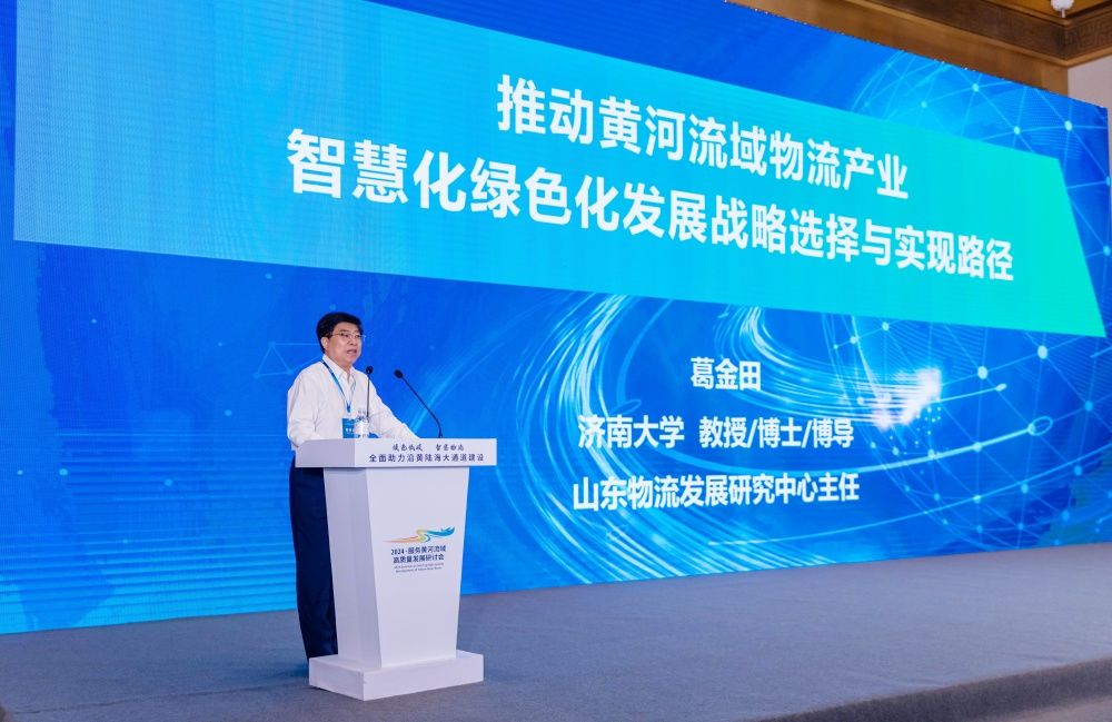 5月25日,由中国物流与采购联合会、山东省港口集团主办的“共建沿黄陆海大通道 融入全国统一大市场——2024·服务黄河流域高质量发展研讨会”在济南召开,来自沿黄九省区政府部门、行业协会、海关、铁路、港口及重点物流企业的代表参加会议。会议围绕共建沿黄陆海大通道、共筑降本增效新模式、共促绿色智慧新生态、共创互利共赢新局面等主题展开研讨,旨在深入贯彻落实习近平总书记近日在山东考察时提出的重要指示要求,推动沿黄省区互联互通、深化合作,更好的服务实体经济。beat365中文登录入口山东物流发展研究中心主任葛金田教授应邀参会,并作《推动黄河流域物流产业智慧化绿色化发展的战略选择与实现路径》的学术报告。