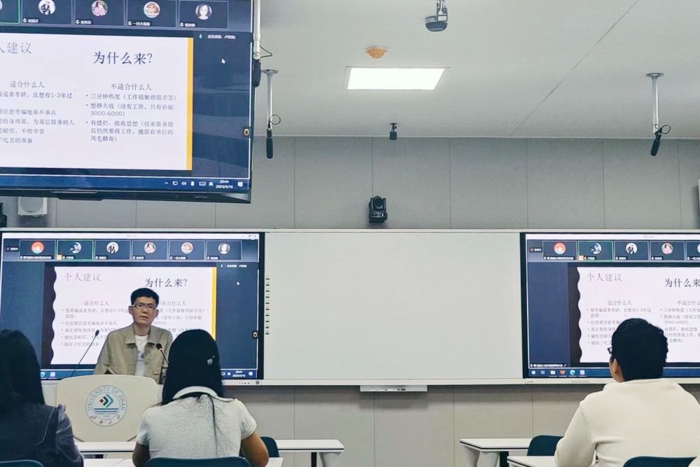为充分发挥大学生的青春力量,扩大学生就业视野,学院联合学校外国语学院在第一教学楼联合开展“物语'西'约,逐梦未来”西部计划政策主题宣讲会。为加强毕业生国防教育,积极响应国家号召,筑梦军营勇担时代“排头兵”,特别组织毕业生入伍政策宣讲活动,邀请退役大学生士兵开展宣讲。宣讲会激发了同学们投身西部建设和参军入伍的兴趣和热情,激励更多同学到基层去,到祖国和人民最需要的地方去,为基层和国防建设的发展贡献青春力量。