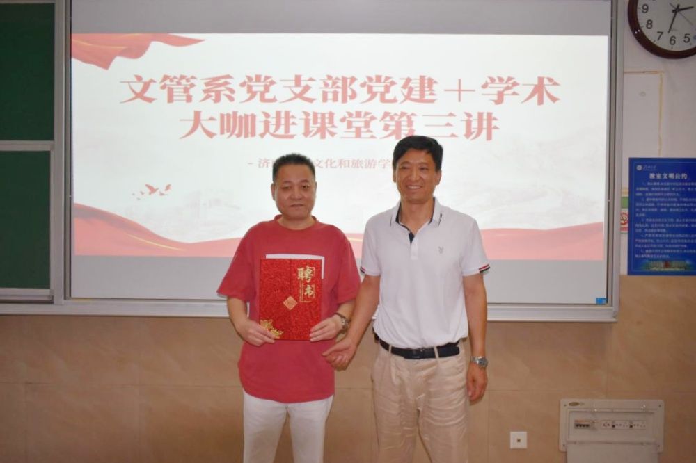 孟德洋最后进行了总结发言,并对同学们提出了三点要求:一是要求同学们不仅要学习荆延亮先生超高的专业素养和能力,还要学习荆总吃苦耐劳的精神。今日中国,崇尚劳动、热爱劳动、辛勤劳动、诚实劳动的劳动精神已经成为民族精神和时代精神的重要组成部分,成为中国共产党人精神谱系的重要内容之一。二是要求同学们培养创意思维能力,这种创意能力不仅要富有文化气息,还要具有当今的时代特色。三是习近平总书记对山东文化“两创”工作十分关心、寄予厚望,多次作出重要指示要求。今年5月,习近平总书记视察山东时,指出山东要担负起新时代的文化使命,在推动文化繁荣、建设文化强国、建设中华民族现代文明上积极作为。因此,要求同学们学好专业知识,未来要在国家文化产业大发展的背景下有一番作为。最后,他表示学院党委“党建学术工作坊”将持续发挥党建引领作用,下学期将针对2024级新生开展青春励志类党建教育系列活动,培根铸魂育新人,为学院的人才培养工作持续提供方向和动力。