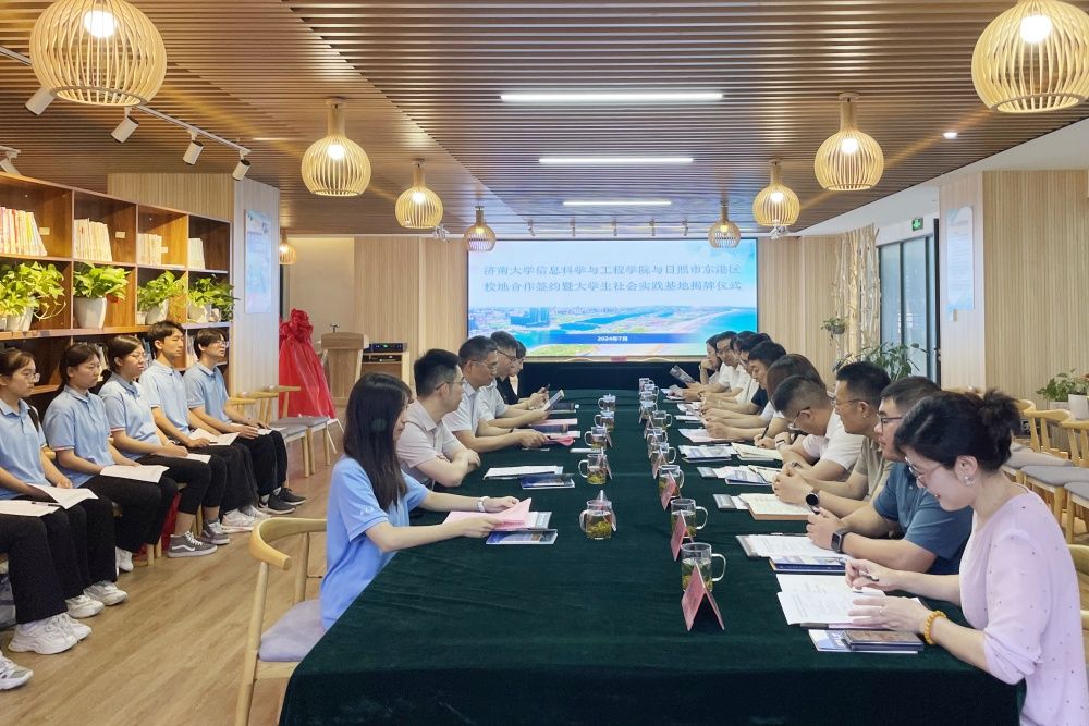 7月10日,信息科学与工程学院一行前往日照市东港区开展访企拓岗暨校地合作签约揭牌仪式。日照市副市长、东港区委书记刘祥龙出席相关活动,东港区委副书记闫伟,信息科学与工程学院党委书记夏卫东,党委副书记、副院长郝伟出席仪式,东港区科技局、工业和信息化局、人力资源和社会保障局、东港区团委、日照人力资源服务产业园相关负责人、学院相关老师及社会实践团队学生代表参加签约仪式。
