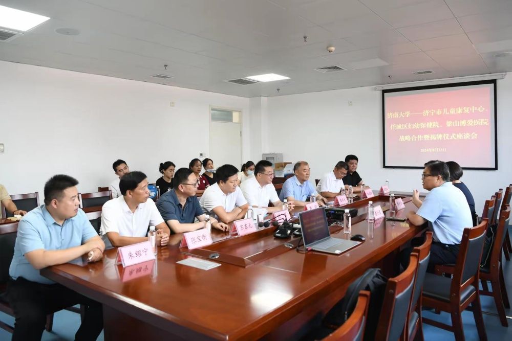 8月23日,在全国残疾预防日来临之际,教育与心理科学学院与济宁市儿童康复中心、济宁市任城区妇幼保健院、梁山博爱医院战略合作暨揭牌仪式活动在济宁市儿童康复中心成功举办。
