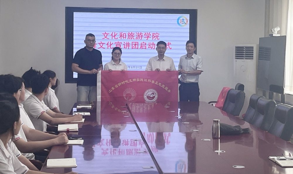 为弘扬中华优秀传统文化、助力青年学生成长,8月31日上午,文化和旅游学院大舜文化志愿宣讲团成立仪式在舜耕校区文旅楼212会议室举行。山东省大舜文化研究会副秘书长、山东省政府办公厅一级调研员赵志刚,学院党委书记孟德洋,学院大舜文化志愿宣讲团指导教师及全体宣讲队员参加活动。