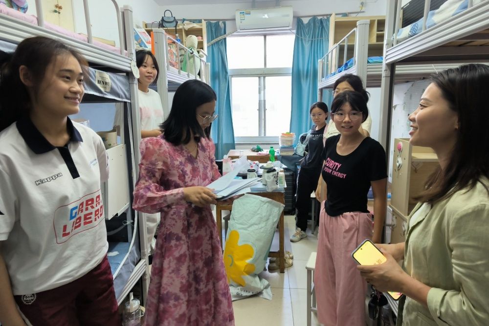 9月3日下午,学院领导、新生辅导员前往新生宿舍,与新生们亲切交流,详细询问了他们在初入大学校园后的感受和适应情况,提醒同学们遇到困难及时与辅导员、学院联系,耐心解答新生们提出的疑问与困惑,鼓励同学们尽快适应大学生活,明确学习目标,合理制定规划,积极参加校园活动,全面提升综合素质。