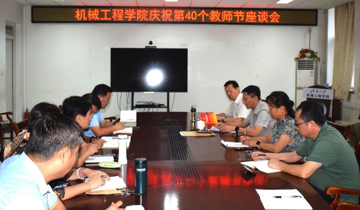 为进一步凝聚奋进力量,弘扬尊师重教的良好风尚,9月10日,机械工程学院举行了庆祝第40个教师节座谈会,学院党委书记程涛主持,学院领导班子成员与来自教学、科研一线的多位优秀教师代表共聚一堂,共话教育理想,同庆节日喜悦。