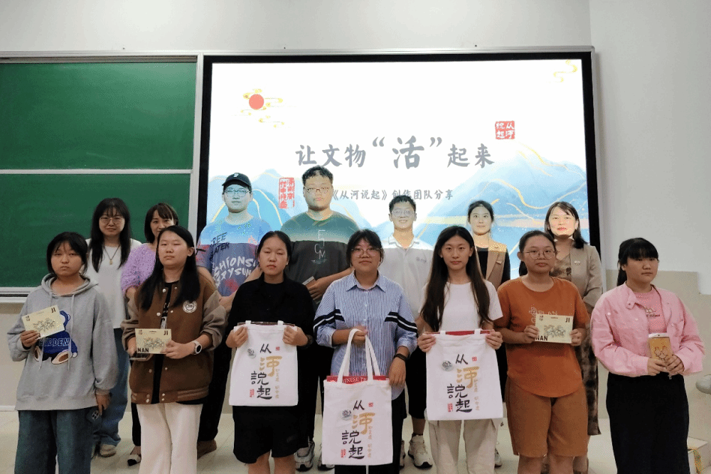 路演采用讲解+视频+互动的方式展开。活动伊始,介绍了节目的制作背景,同学们被《从河说起》宣传片精美的画面和深刻的内涵所吸引,宣传片将黄河的壮丽与文化的厚重完美融合,活动中,《从河说起》的制片人于娜及团队主创人员,以幽默风趣的语言对选题策划、创作思路、摄制过程和心得体会等多方面进行了讲解。该系列短视频以文物为切入点,通过古老的文物,让观众触摸历史的脉络,感受先人的智慧与情感。节目多样化的风格,颇具吸引力,将文物文化通俗易懂的表达,新颖的表现形式、时尚的元素和AI等最新的表现手法,让跨越千年的文物“活”了起来,焕发出新的活力与魅力。