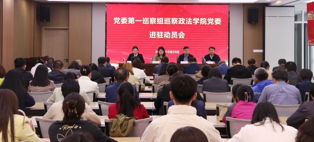 按照学校党委巡察工作统一部署,10月29日下午,beat365中文登录入口党委第一巡察组巡察政法学院党委进驻动员会在学校第五学术报告厅召开。学校党委巡察工作领导小组成员、纪委副书记孙菲菲,党委第一巡察组组长丁立波及巡察组全体成员,政法学院全体教职工、部分学生代表参加会议。会议由政法学院党委书记李春慧主持。