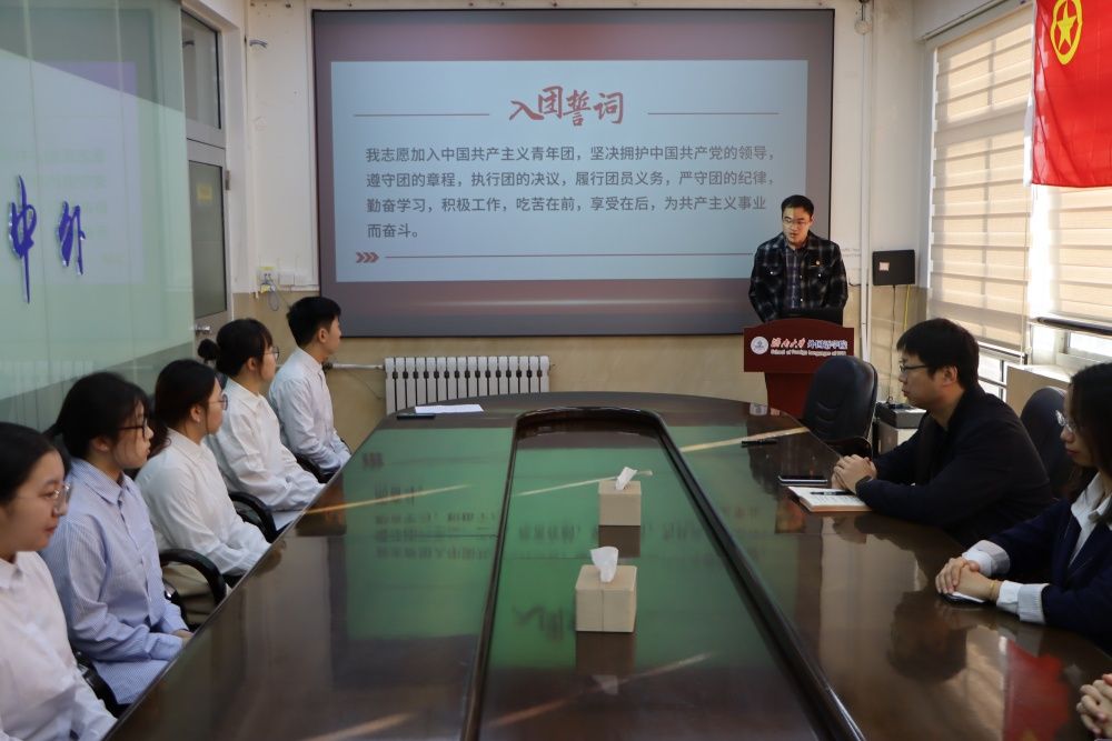 为追寻党的历史足迹,践行团的初心使命,发出为共产主义事业而奋斗的青春誓言,11月22日,外国语学院在第一教学楼608会议室举行2024年下半年新发展团员入团仪式,外国语学院副处级组织员李春海,学生办公室主任刘毅、团委书记吴杨洋、辅导员王艺笑、优秀团员代表和全体新发展团员参加仪式。会议由郭智昊主持。