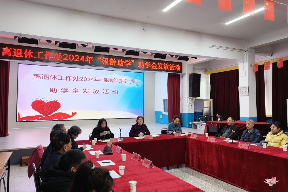 11月26日下午,2024年度“银龄助学金”发放仪式在离退休工作处二楼多功能厅举行,离退休教师代表、受资助学生、相关部门和学院负责同志、辅导员共50余人参加了活动,会议由离退休工作处处长高卫红主持。