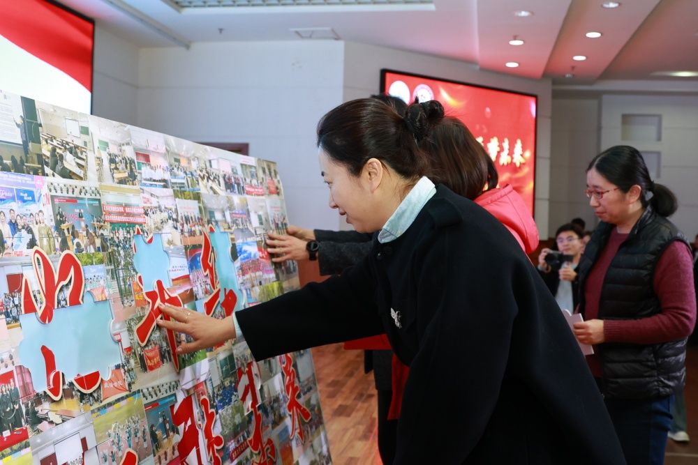 互动环节,师生共同在“政青春”的底板上用135块拼图拼出了“政好年华 逐梦青春”字样,每一块拼图都是政法学院师生参加活动的合影,一张张合影定格美好的瞬间,一个个瞬间汇聚青春的年华。