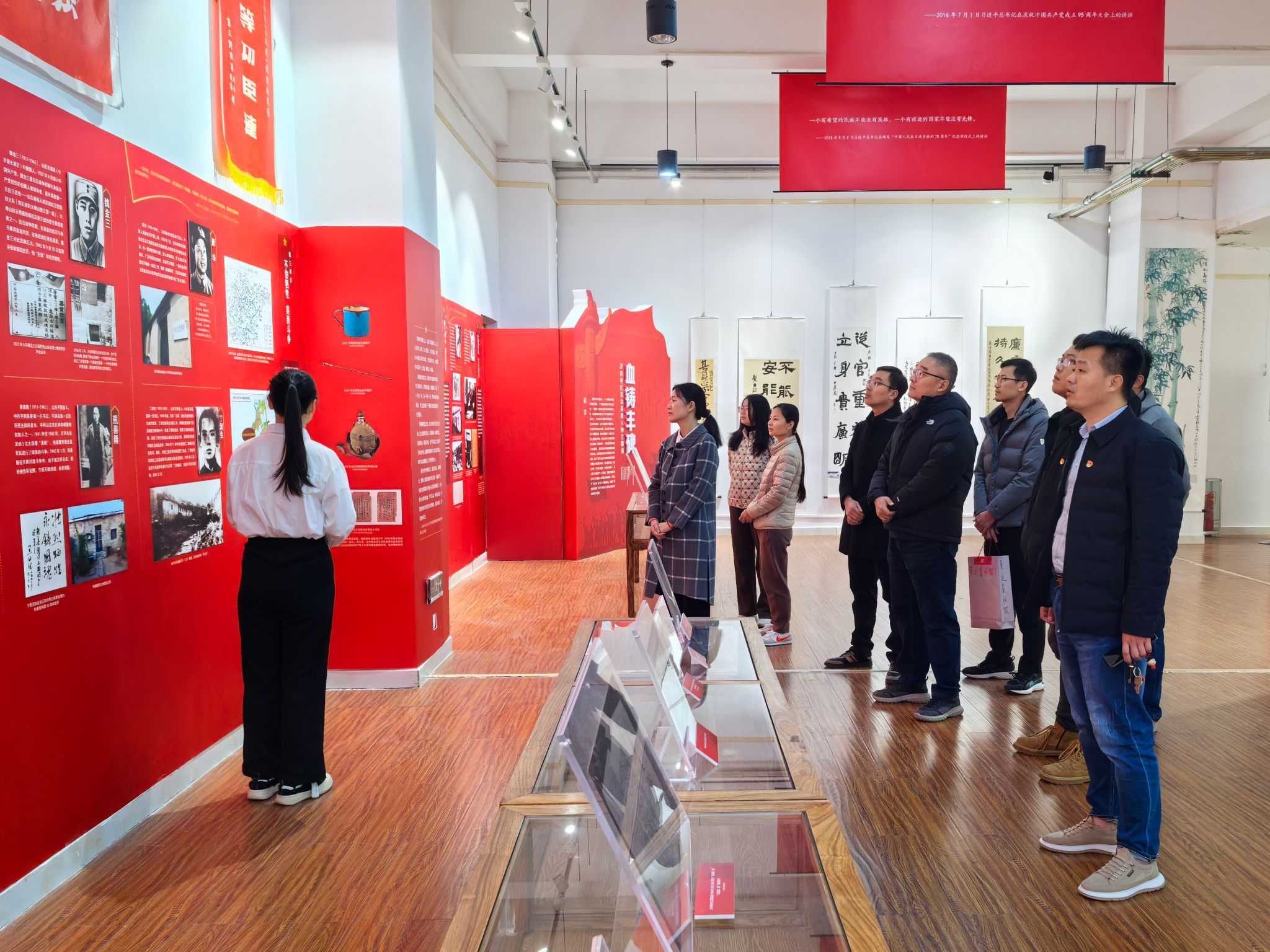 在讲解员的引导下,支部党员依次参观了本次展览的五个单元,本次展览分别以“坚持真理 坚守理想”“践行初心 担当使命”“不怕牺牲 英勇斗争”“对党忠诚 不负人民”“牢记嘱托 砥砺前行”为题,精选济南地区博物馆馆藏革命文物,深入挖掘文物背后立体鲜活的人物精神与感人至深的红色故事,再现了济南人民在中国共产党的领导下为民族解放与国家独立所创造的艰苦卓绝的光辉奋斗史,展示了新民主主义革命时期济南地区革命英雄人物和团体的精神风采。