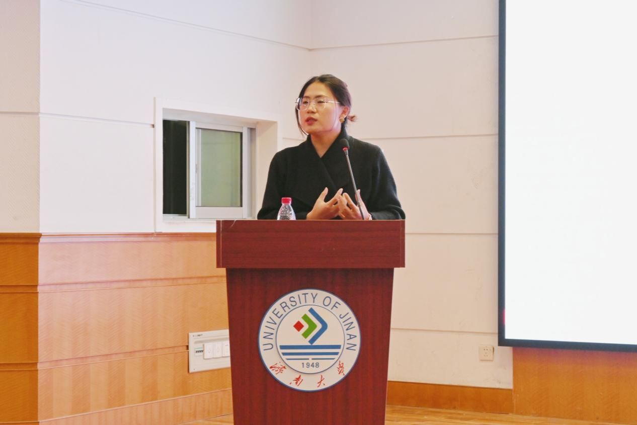 仪式结束后,圣儒恒信(山东)教育科技有限公司副总裁孟瑶为文学院学生作大学生就业力提升讲座,她介绍了新时代人才结构调整下的人才政策及应对策略,助力同学们提升就业规划水平,明晰就业方向。