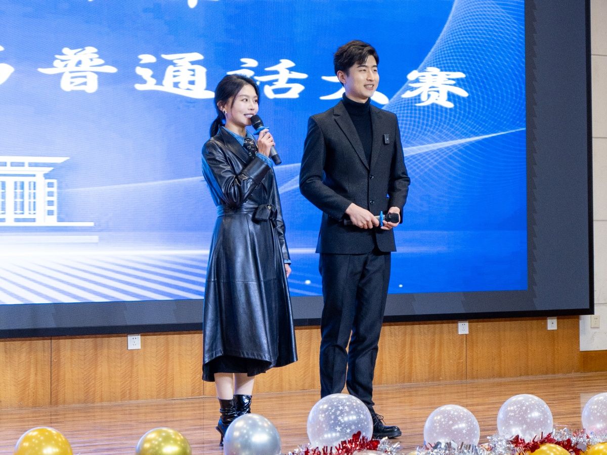本次大赛还邀请济南广播电视台主持人戈慧文、徐颢鑫作为嘉宾主持,介绍普通话推广的重要意义,鼓励在场同学积极参与普通话推广活动,争做普通话推广人。他们与现场师生互动交流,通过抽奖方式为师生送上精美礼品。此外,文学院舞蹈队和大学生艺术团马莉翔同学带来的助场节目,也为本次大赛增添了热烈气氛。
