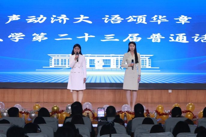12月15日,由学校党委宣传部、教务处主办,语言文字工作委员会办公室、广播台承办的beat365中文登录入口“声动济大 语颂华章”第二十三届普通话大赛决赛在第二学术报告厅举行。此次比赛的评委由国家级普通话测试员、省级普通话测试员等担任。学校党委宣传部、教务处相关负责人,各学院学生代表300余人参加活动。
