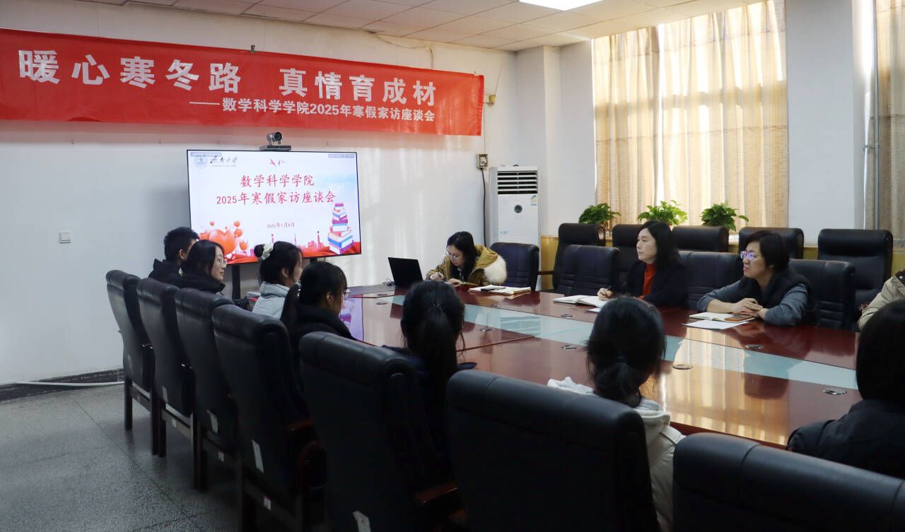 暖心寒冬路,真情育成材,为落实立德树人根本任务,确保寒假期间的家访工作扎实有效,1月8日,数学科学学院召开2025年家访座谈会,学院党委书记崔英静,党委副书记、副院长张沂红,辅导员代表以及各年级受资助学生代表参加座谈会。