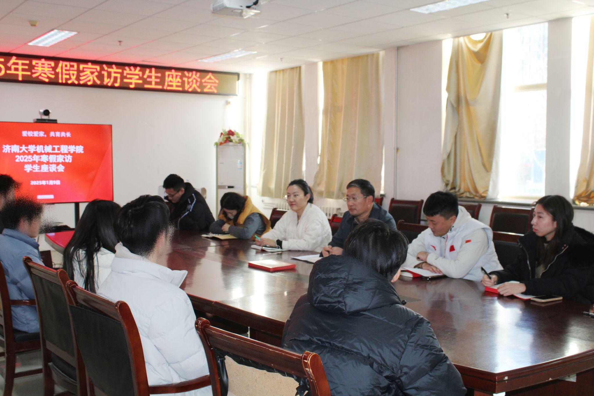为深入贯彻落实立德树人根本任务,有效落实学校资助政策,将学校对家庭经济困难学生的关怀落实落细,促进学生健康成长和全面发展。1月9日下午,机械工程学院组织开展了2025年寒假家访座谈会,学院党委副书记、副院长孙成政、全体辅导员、来自各年级的10名家庭困难学生代表参加活动。活动由学办主任宁大千主持。