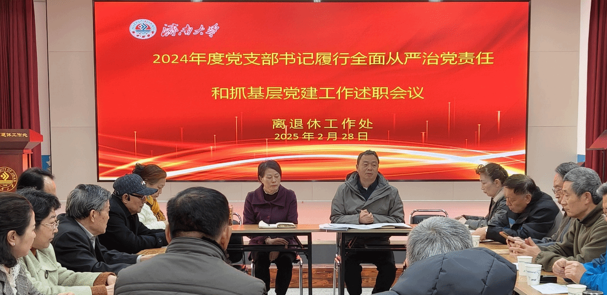 2月28日上午,为不断推动全面从严治党向基层延伸、向纵深发展,实现党的建设工作全面提质增效,离退休工作处召开2024年度党支部书记履行全面从严治党主体责任和抓基层党建工作述职会议。会议由离退休工作处党委书记杨立存主持,处长高卫红及各支部书记参加会议。