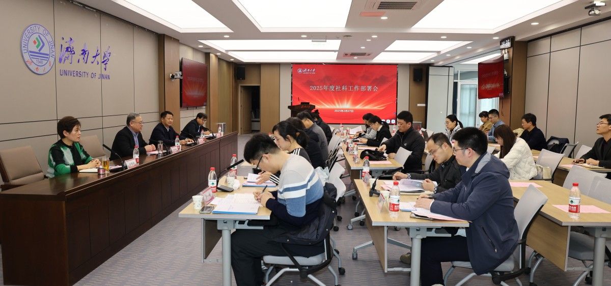 高功敬汇报了2024年度社科工作以及寒假重点工作开展情况,并对2025年社科重点工作进行部署。社科处副处长任慧颖、况明明分别就科研立项、社科奖励、平台建设、社会服务等具体工作进行详细汇报。各文科学院、文科独立运行科研平台分别就2025年工作计划和举措展开交流发言。