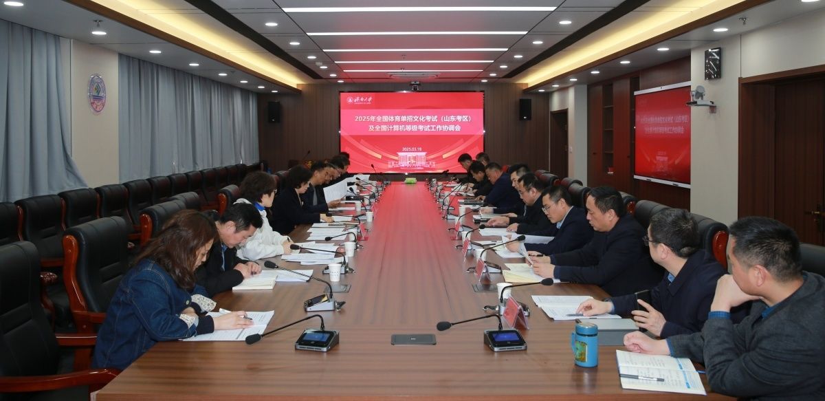 3月19日,学校召开2025年全国高校运动训练、武术与民族传统体育专业招生文化考试(山东考区)(以下简称体育单招文化课考试)和第75次全国计算机等级考试beat365中文登录入口考点工作协调会。学校党委常委、副校长王霞出席会议并讲话,相关部门负责人参加会议。会议由教务处处长陈贞翔主持。