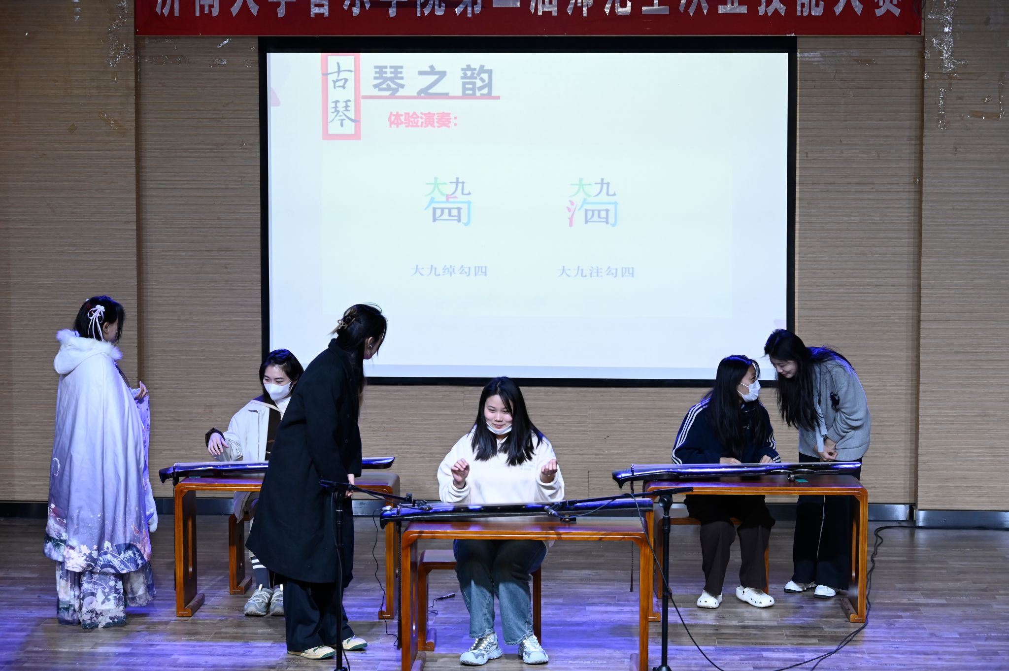 4月2日,齐鲁音乐文化讲坛2025年第一期——”古琴之器与技”主题讲座举行,奏响了学校美育新乐章。此次讲座由济南市非物质文化遗产古琴斫制技艺代表性传承人李科担任主讲,张馨怡、薛英和郭玉芬老师的独奏、李艺馨和袁亦木的合奏倾情加盟,共同为观众奉献了美育盛宴。来自音乐学院、马克思主义学院、文旅学院、文学院、国际交流学院、外国语学院等学院的师生聆听了讲座,为此次音乐讲坛会增添了更多美育色彩。