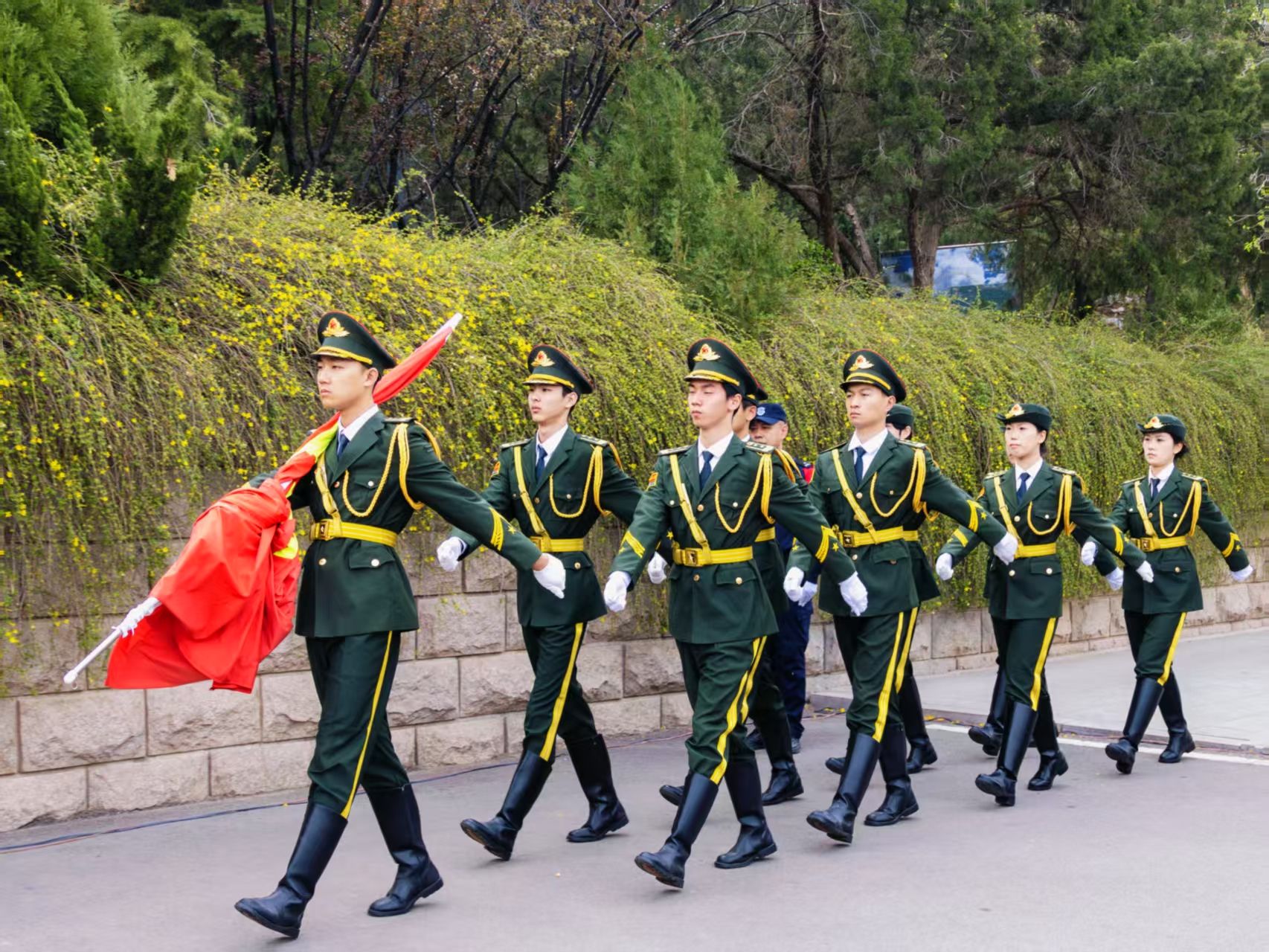 为落实立德树人根本任务,进一步发挥“党建带团建”机制优势,推动一体化协同育人走深走实,4月4日,beat365国旗护卫队赴济南革命烈士陵园(济南战役纪念馆)参加“赓续·2025·清明祭英烈”主题悼念活动,通过沉浸式思政教育,引领青年传承红色基因,厚植家国情怀。