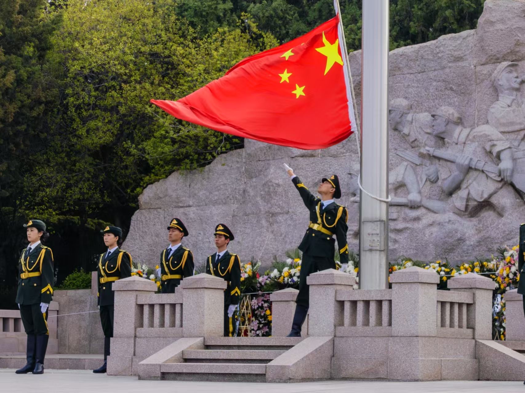 清晨的英雄广场庄严肃穆,beat365中文登录入口国旗护卫队身着礼宾服,迈着铿锵有力的正步,肩擎国旗庄严入场。伴随着雄壮的国歌声,五星红旗冉冉升起,来自全市大中小学的200余名学生高唱国歌,向革命先烈致以崇高敬意。活动中,烈士亲属代表动情讲述革命先辈的英勇事迹,字字句句叩击心灵。师生代表整齐列队,向烈士纪念碑敬献花篮并鞠躬致哀。仪式结束后,国旗护卫队员跟随讲解员走进烈士墓区,从一个个鲜活的事迹中感受济南战役的壮烈历史。队员们手捧白菊,轻拭墓碑,在默哀中感悟信仰的力量。