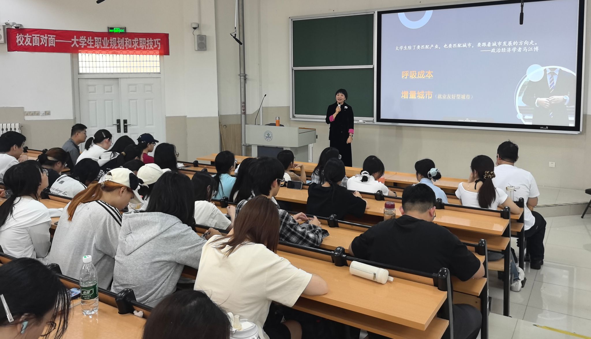 随后,同学们围绕跨专业就业、职场人际关系等热点问题踊跃提问。刘娉娉结合自身经历,给出了“专业是起点不是限制”“真诚待人但要懂得换位思考”等精彩回答。她特别强调:“职场没有标准答案,但提前规划能让你少走弯路”,引发了在场同学的强烈共鸣。