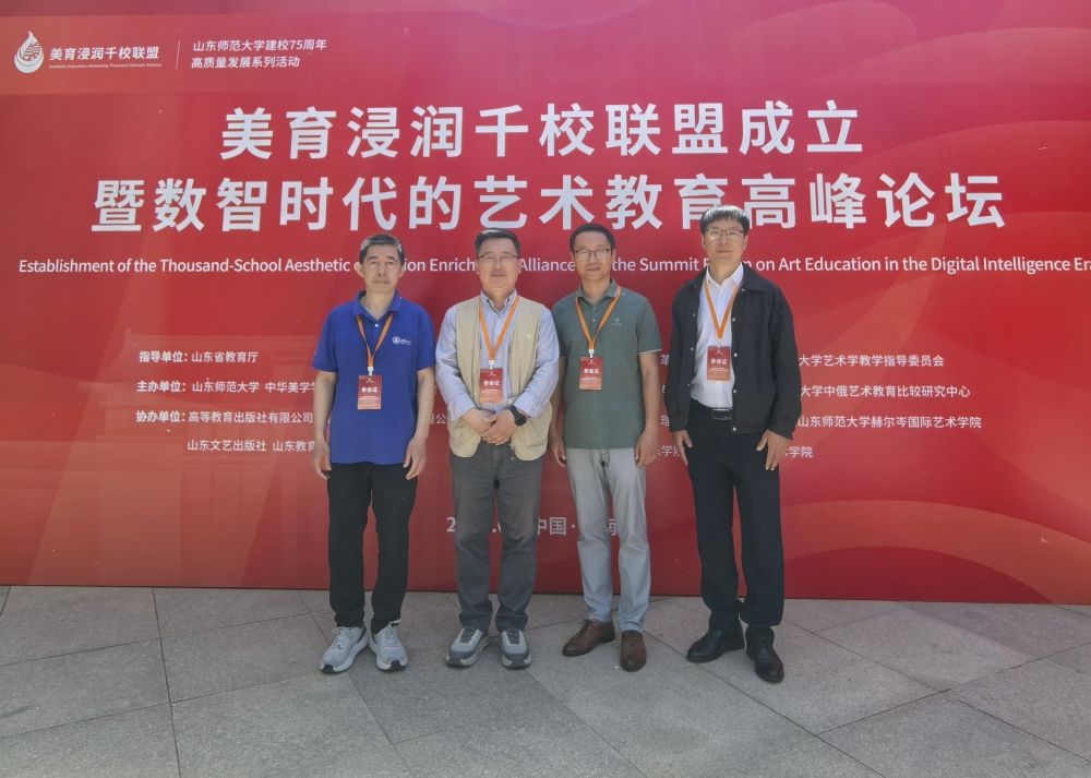 5月17日,由山东省教育厅指导,山东师范大学、中华美学学会青年美学专业委员会主办,山东省学校美育改革发展研究中心、山东师范大学艺术学教学指导委员会、教务处、赫尔岑国际艺术学院、音乐学院、美术学院、美学与美育研究中心等承办的“美育浸润千校联盟成立暨数智时代的艺术教育高峰论坛”在山东师范大学千佛山校区举行。山东师范大学校长张建,山东省教育厅体育卫生与艺术教育处处长王桂龙,中华美学学会青年美学学术委员会主任张颖出席活动并致辞。来自国内外美育领域、兄弟院校的专家学者、教育实践者,以及驻济高校和山东师范大学艺术学科师生共700余人参加活动。成立仪式由山东师范大学副校长张茂聪主持。beat365中文登录入口美术与设计学院副院长杨海波、美术系副主任马立洪受邀作主题报告,学院教师陈炜、王红梅、李晴、刘金鑫等一同参会。