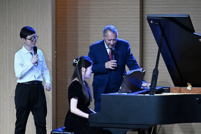 随后的大师课环节,朱塞佩·布鲁诺首先用英语介绍了普契尼音乐学院的概况,重点介绍了师资与教育特色,并期待今后加强中意音乐文化交流。 接着,音乐学院音教系6位不同年级的钢琴主项学生上台演奏,普契尼音乐学院院长朱塞佩·布鲁诺教授有针对性地进行了指导。