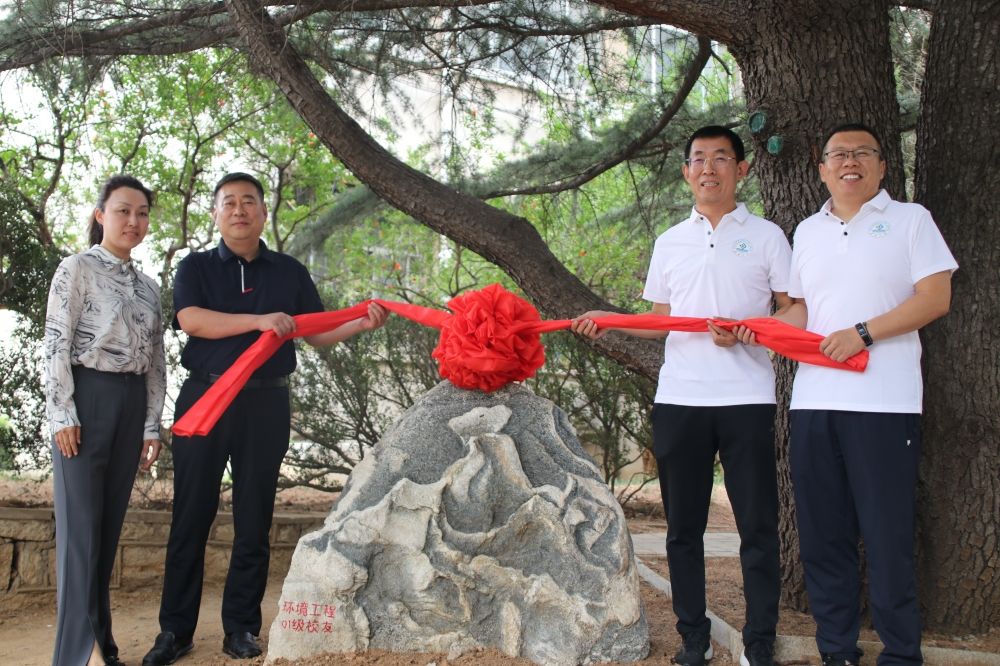 活动伊始,校友们齐聚九教楼前,举行泰山石捐赠仪式。合作发展处副处长、校友工作办公室副主任景丽萍,水利与环境学院党委书记王义,校友代表刘庆、张庆智共同为景观揭幕。