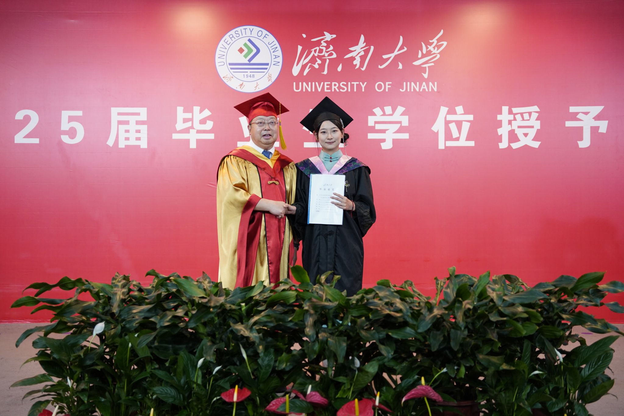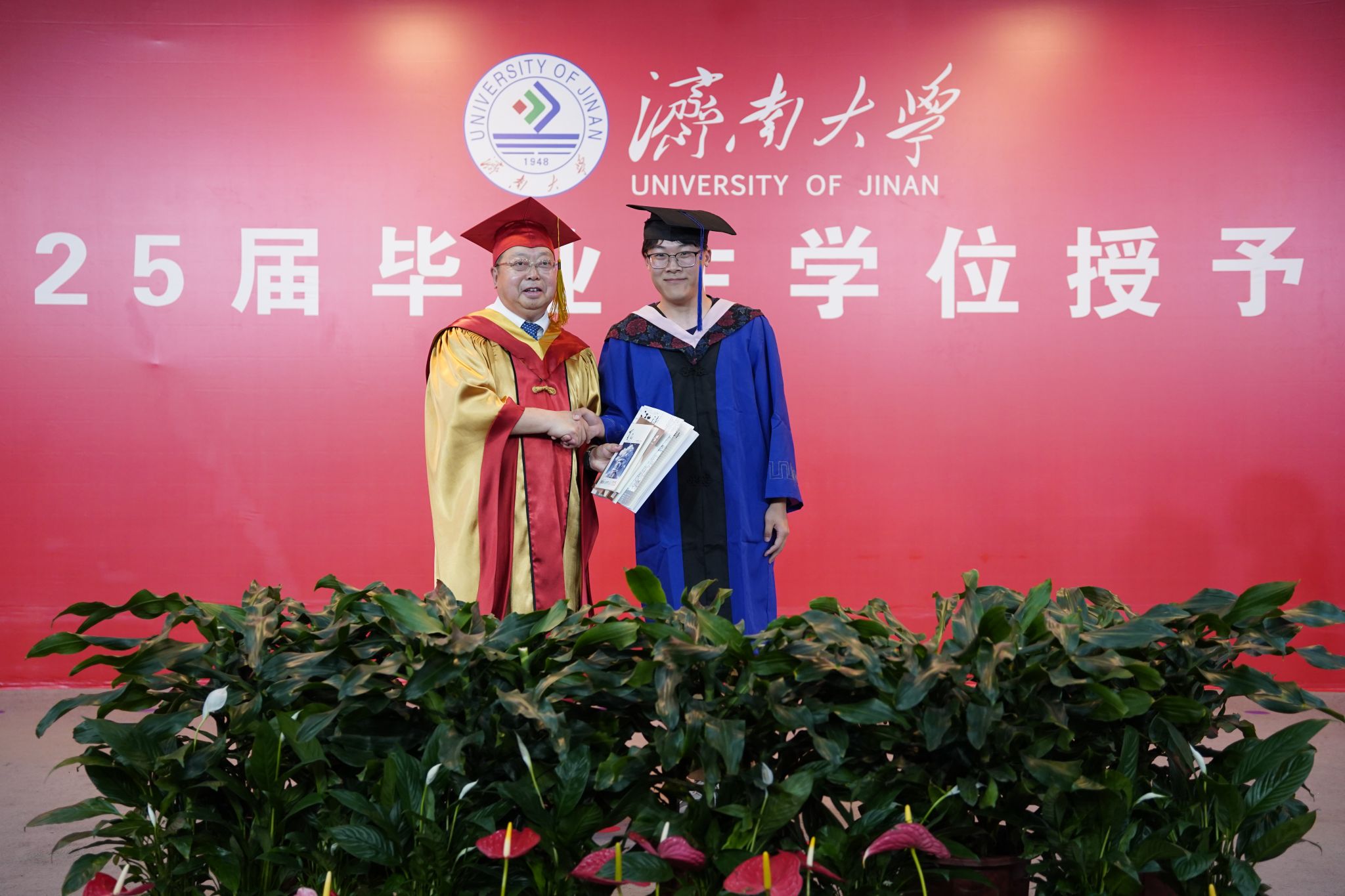 学位授予仪式在主校区第一学术报告厅举行,校长刘宗明为文学院毕业生一一拨穗、亲切鼓励并合影留念,定格下这一难忘画面。随后,学院领导、教师代表和毕业生们一一握手,以表祝贺。
