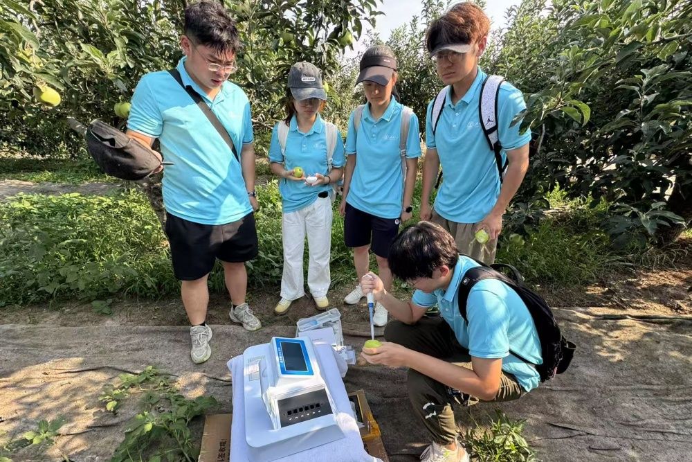 此次活动紧扣乡村振兴战略,聚焦乡村特色产业发展,旨在通过科技力量助力农业提质增效,推动巩固拓展脱贫攻坚成果同乡村振兴有效衔接。团队充分发挥自动化专业优势,将理论知识与田间地头的实际需求紧密结合。在新泰市润禾果树种植专业合作社与山农酥梨基地,实践团队化身“科技助农小分队”,携带专业检测设备深入果园。学生们熟练操作仪器,对酥梨、苹果等果品的糖度、硬度及病虫害情况进行精准检测,详细记录数据并形成分析报告 。“这些年轻人带来的技术太实用了,以前靠经验选果,现在有了数据支撑,效率提高了不少!”合作社负责人看着检测报告,难掩喜悦之情。团队还走进果品加工厂,利用傅立叶变换光谱分析技术针对企业在筛选优质果实上遇到的难题积极给予科技化的解决方案,实现农业生产的精准化和高效化,让科技红利切实惠及农户。目前,团队与鑫昌农业发展有限公司已达成初步合作意向。