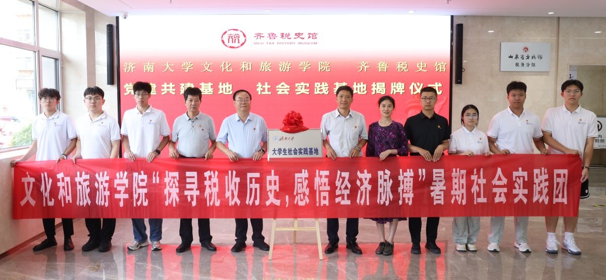 为加强党建引领,深化校政合作,推动实践育人。7月11日下午,文化和旅游学院与齐鲁税史馆隆重举行党建共建基地和社会实践基地签约揭牌仪式。山东省税务局系统党建工作处二级巡视员张焕昌、山东省税务局科研所副所长范连印、文化和旅游学院党委书记孟德洋、学院党委副书记信苏珊、学院团委书记吕龙飞及学生代表共同参加活动。