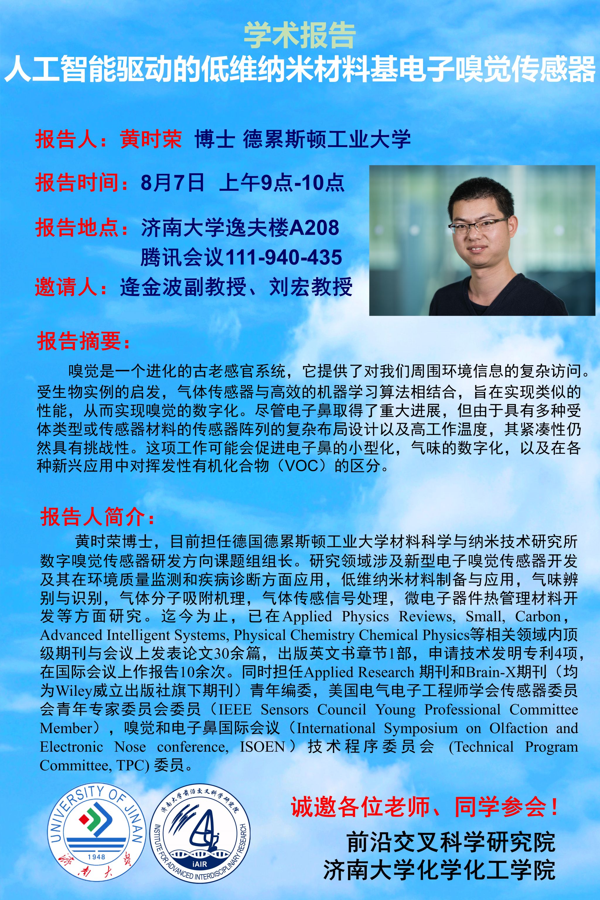 报告人:黄时荣博士 德累斯顿工业大学材料科学与纳米技术研究所数字嗅觉传感器研发方向课题组组长