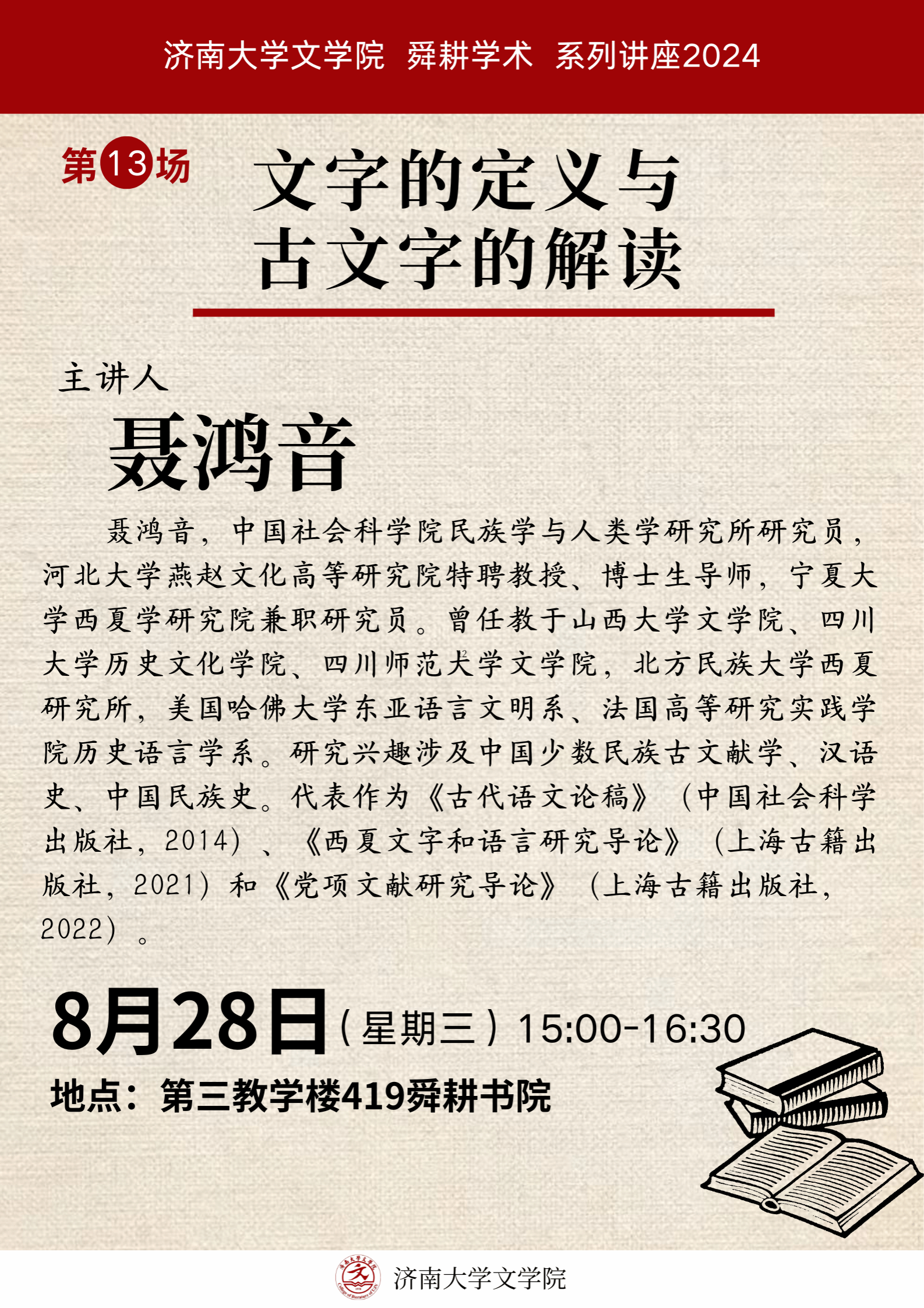 文学院舜耕学术系列讲座第13场——“文字的定义与古文字的解读”