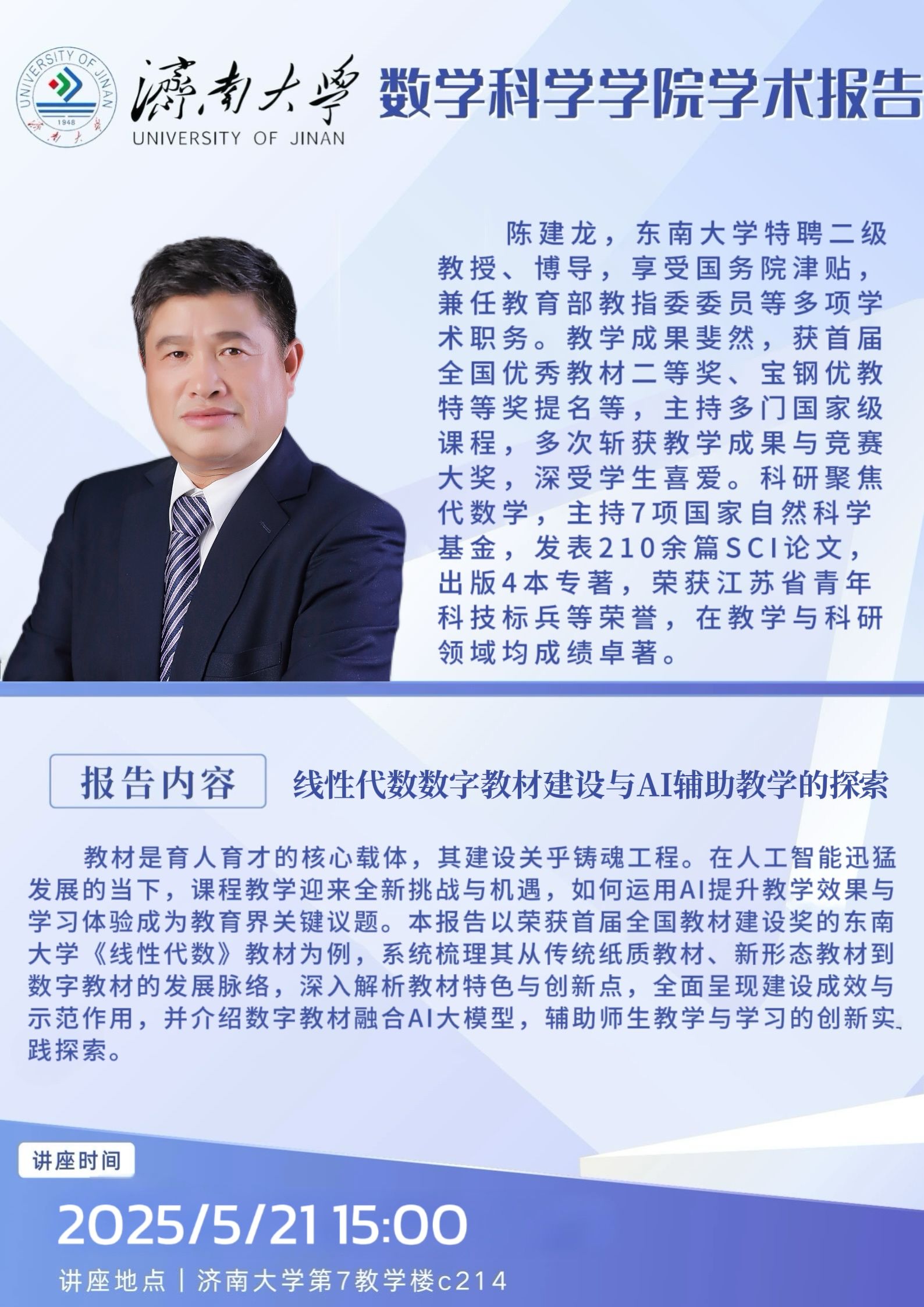 数学科学学院教学学术报告:线性代数数字教材建设与AI辅助教学的探索