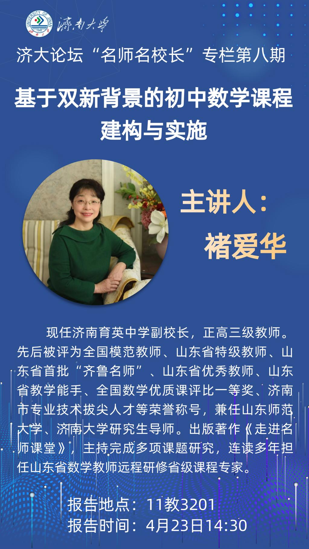 济大论坛“名师名校长”专栏第八期:基于双新背景的初中数学课程构建与实施