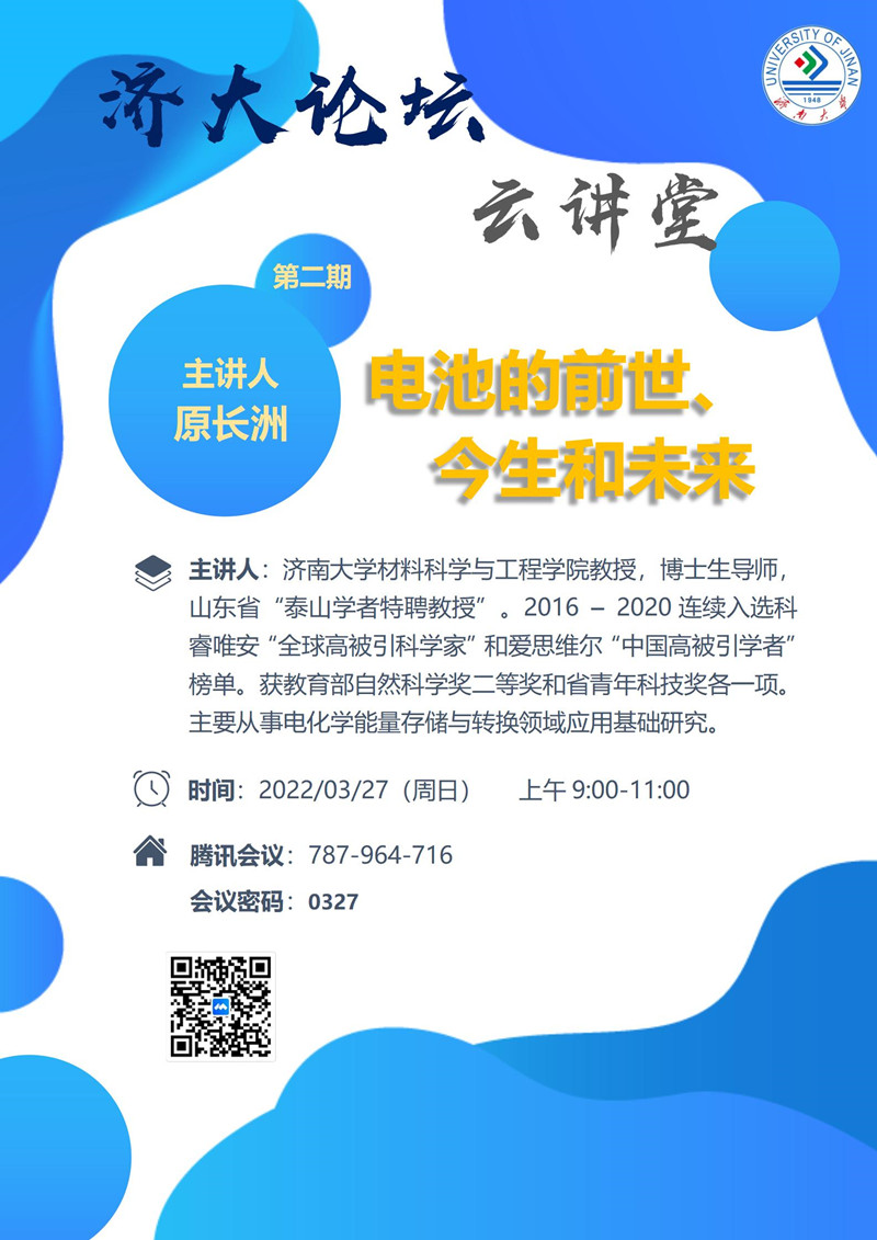 济大论坛“云讲堂”第二期:电池的前世、今生和未来
