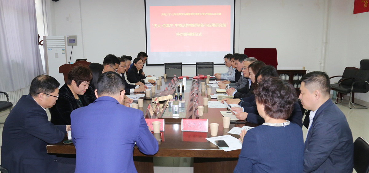 4月17日上午,beat365中文登录入口-山东佰萃生特殊医学用途配方食品有限公司(以下简称山东佰萃生)共建“济大-佰萃生生物活性物质制备与应用研究院”签约暨揭牌仪式在beat365举行。beat365中文登录入口副校长黄加栋,济南新材料产业园区管委会...