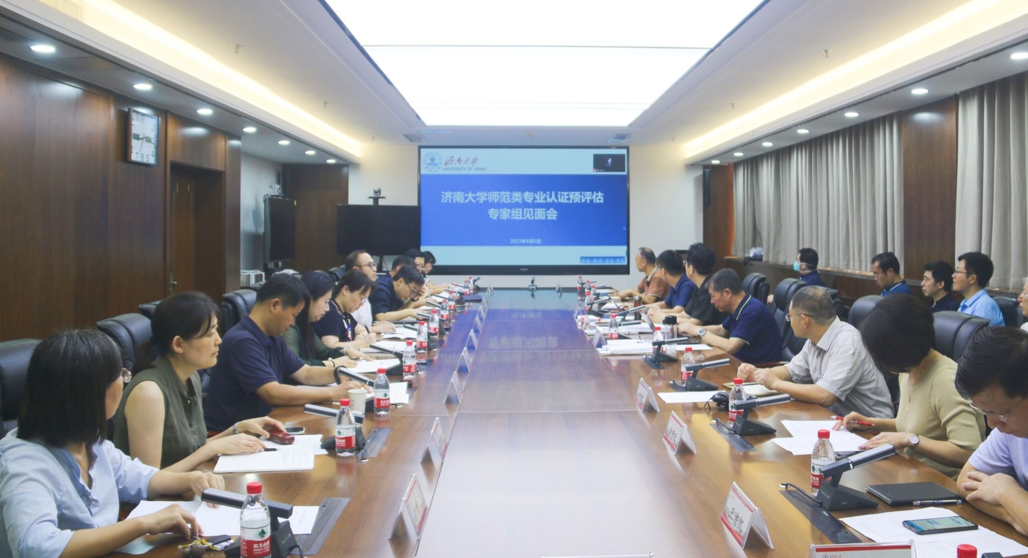 为进一步推进师范类专业认证工作,加强认证工作指导,提升认证工作质量,确保思想政治教育、地理科学专业顺利迎接师范类专业第二级认证现场考查,9月5日,学校组织开展了2023年师范类专业认证预评估工作。预评估专家组见面会在学校第一会议室举行,曲阜师范大学张良才教授、齐鲁师范学院赵立峰教授、beat365中文登录入口郭浩帆教授等三位专家莅临指导。党委常委、副校长王霞出席会议,相关职能部门、学院负责人,专业负责人以及认证工作相关人员参加会议。会议由教务处处长陈贞翔主持。